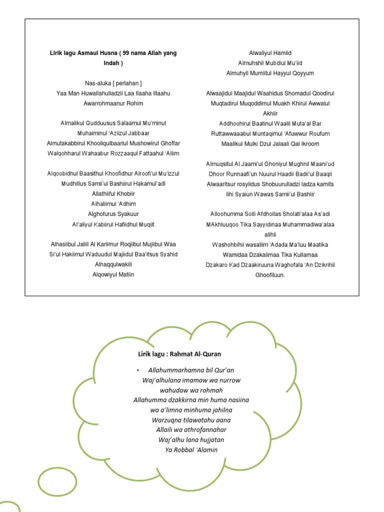Dalam lagu ini terdapat rukun islam, sholat lima waktu dan ajakan untuk menuntut ilmu serta …